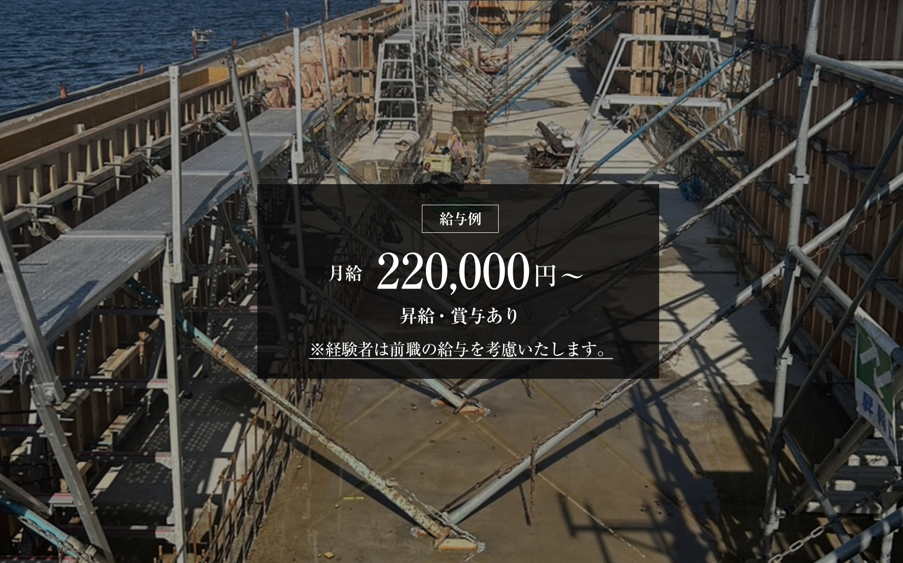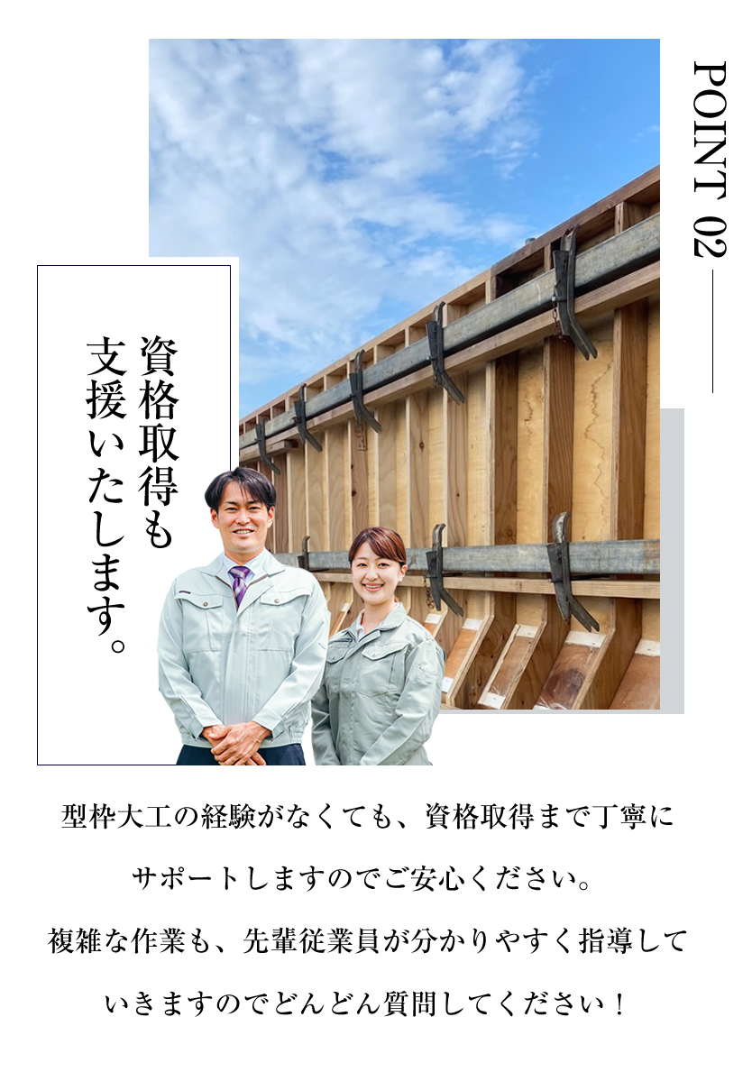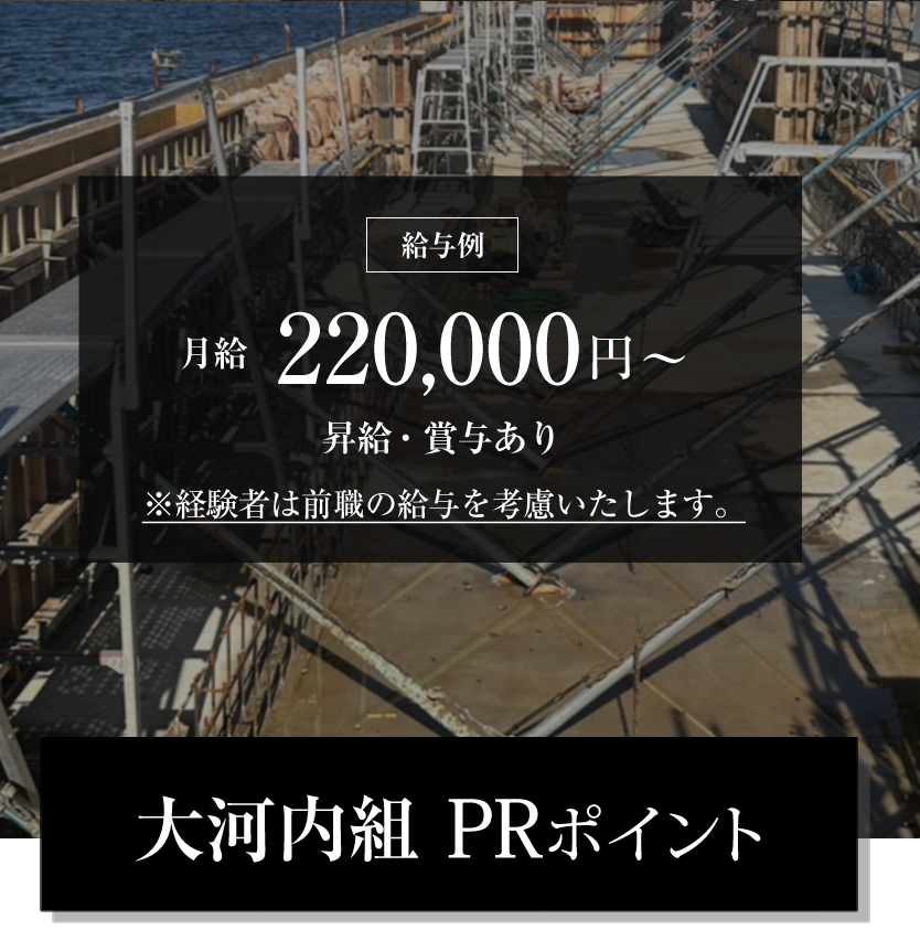 当社は様々な建設工事に携わっていますが、「躯体工事」と呼ばれる工事がメインの仕事になります。建物の安全や仕上がりに直結する重要な工事で、大きなやりがいになる仕事です。電動ノコギリや釘打ち機などの専門的な技術も必要になりますが、 未経験の方でもしっかり指導&フォローいたしますのでご安心ください。どんどんチャレンジしていただければ1〜2年でしっかり技術が身につきます! 経験問わず、やる気のある方は給与に反映していきます!
